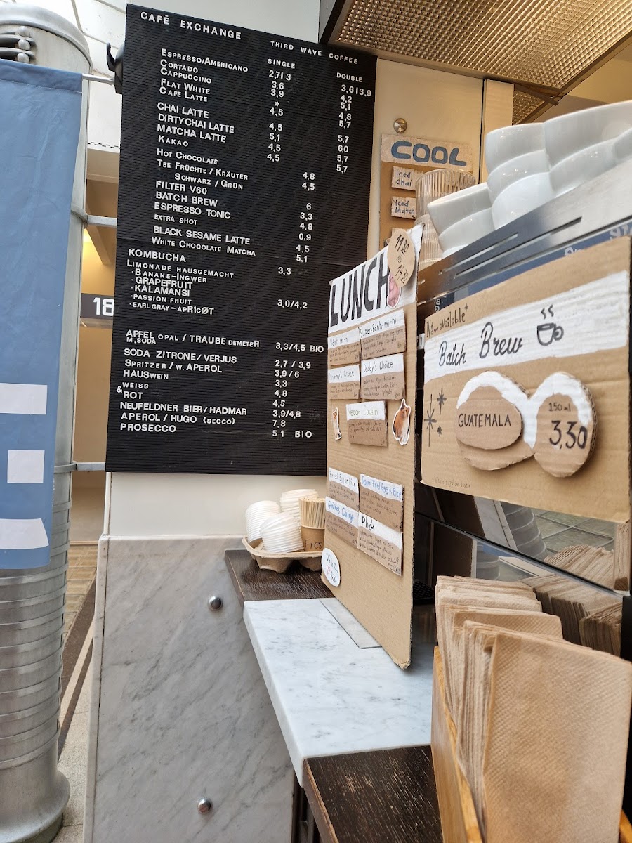 Welcome to Café Exchange, a charming café nestled in the historical heart of Vienna at Georg-Coch-Platz 2. Here, you’ll discover a delightful menu that mirrors its stunning surroundings—a former post office building by the iconic Otto Wagner. The atmosphere is a seamless blend of old-world charm and modern comfort, making it the perfect retreat for coffee enthusiasts and casual diners alike.